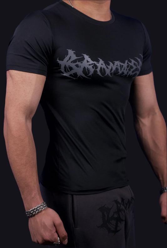 BRANDLESS COMPRESSION TEE - BLACK AND GRAY